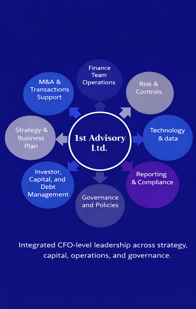 We offer CFO-as-a-service and related financial advisory that includes flexible, executive-level financial leadership to small and mid-sized businesses (SMBs) that are not yet ready or able to hire a full-time Chief Financial Officer, or large Corporates looking for Project support. Think of us as having an experienced, senior high-level finance executive on-demand or part-time.